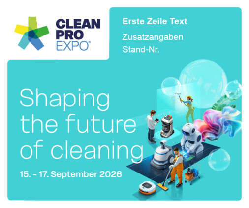 Alle Grafiken sind bereits mit dem CLEAN PRO Expo-Logo versehen und sofort einsatzbereit: